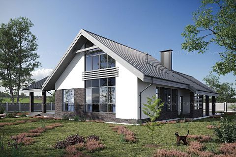 Мансардный дом с навесами для авто и над террасой, д.Мочаны