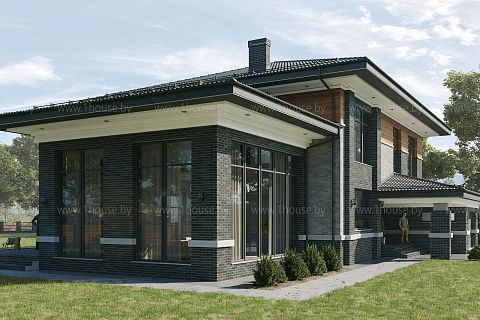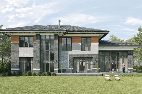 Двухэтажный дом с плоской кровлей для молодой семейной пары в деревне Мочаны