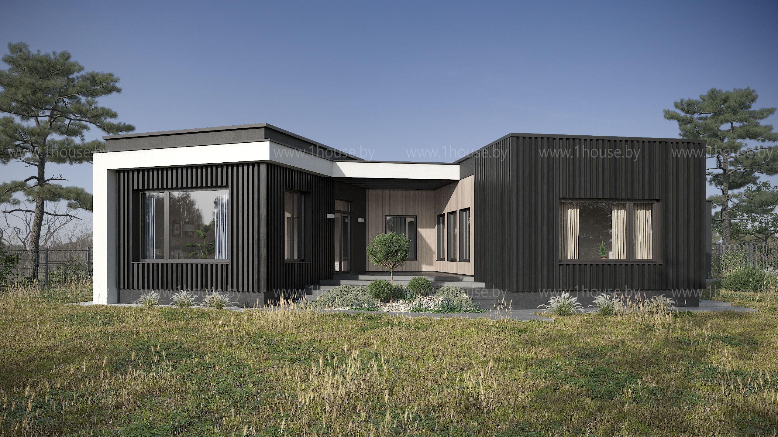 Современный одноэтажный коттедж в СТ «Крылово-2012» — яркий пример частного дома в стиле минимализм. Лаконичная геометрия и открытая планировка создают ощущение простора. Проект грамотно вписан в ландшафт: террасы и большие окна подчеркивают функциональность и эстетическую чистоту. Интерьеры выдержаны в сдержанной палитре, продуманная планировка обеспечивает приватность и комфорт для повседневной жизни.