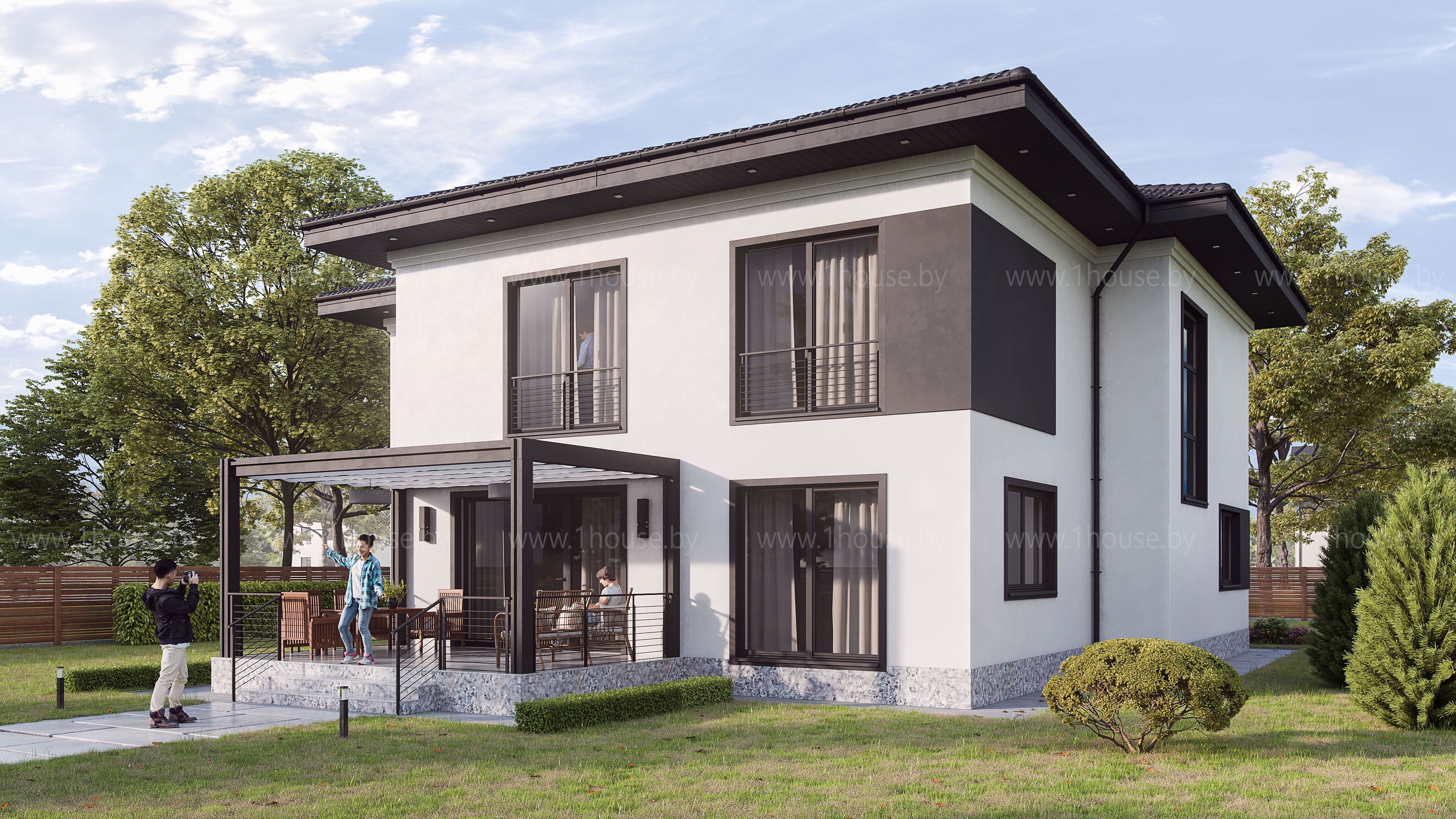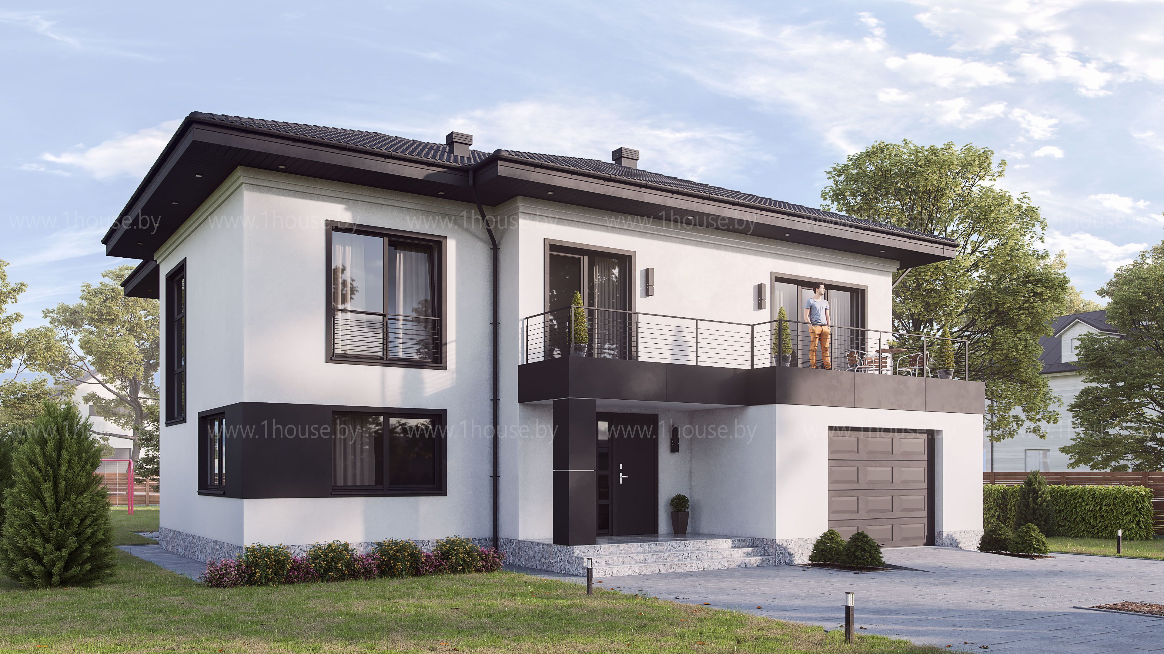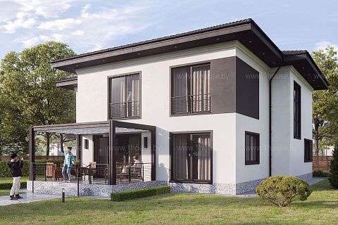 Строгий 2-х этажный дом с эксцентричными черными вставками, аг.Колодищи
