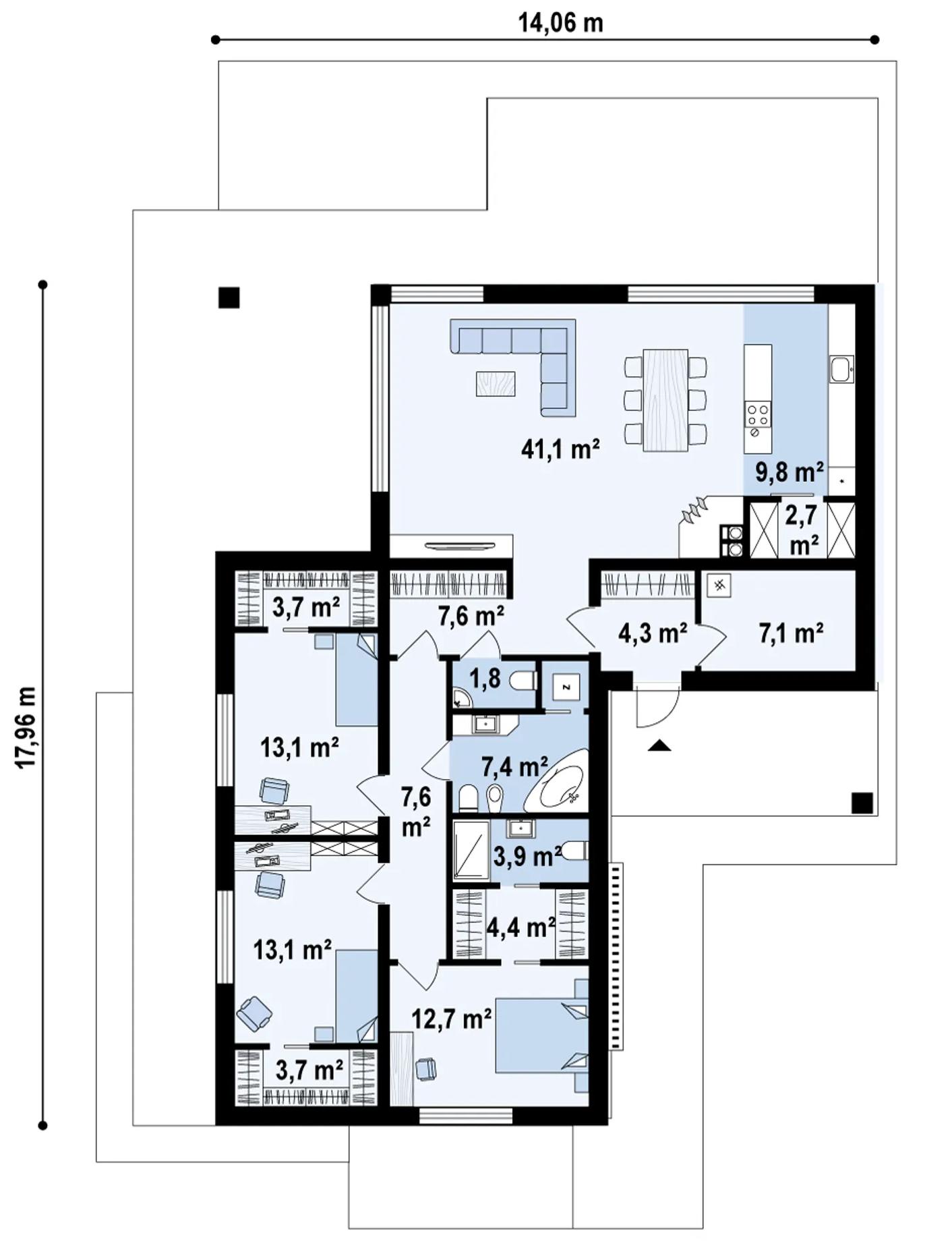 Z317 представляет собой проект комфортного и функционального одноэтажного дома.
