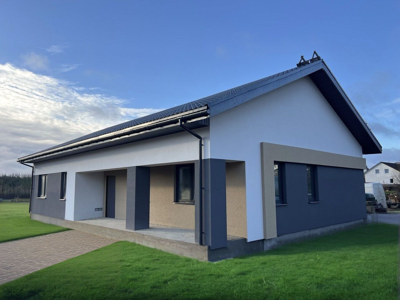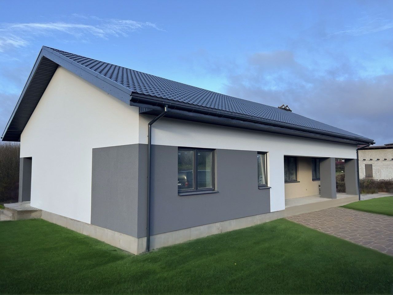 Z349 представляет собой стильный одноэтажный дом с двускатной кровлей и грамотной планировкой. Проект создавался с мыслью о клиентах, которые хотят построить не слишком дорогой классический дом. Такой дом гармонично вольется в любую местность.