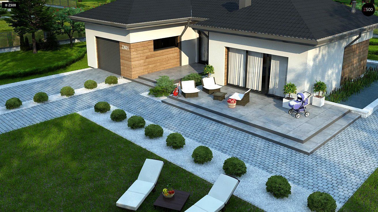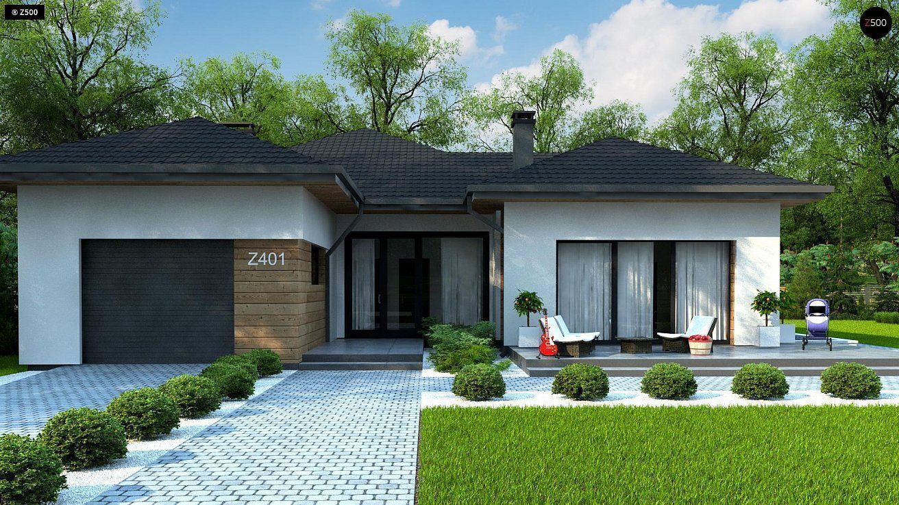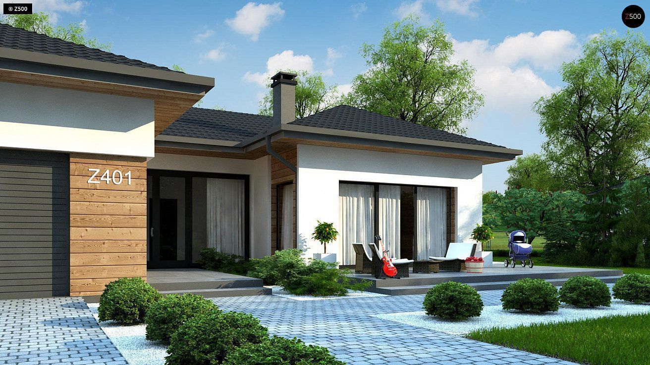 Z401 представляет собой проект комфортного одноэтажного дома в европейском стиле. Проект предназначен для людей, которые предпочитают одноуровневую планировку. Благодаря этому здание становится более комфортным для семьи с маленькими детьми или для пожилых людей, имеющих трудности с передвижением.