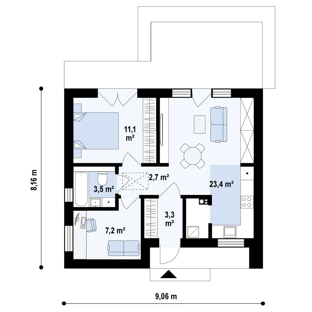 Изменения и доработки проекта, которые не затрагивают объём дома и несущие стены, возможны в рамках типового проекта, если изменений много и они затрагивают множественные изменения объёма дома и несущих конструкций, то лучше сразу разрабатывать индивидуальный проект на основе типового. Примеры несущественных изменений проекта: перенос или изменений перегородок, окон, дверей, высоты потолка, изменение назначения помещений, изменение размеров пола террасы. Существенные изменения типового проекта: перемещение несущих стен и колонн, пропорциональное увеличение площади дома, изменение этажности дома.