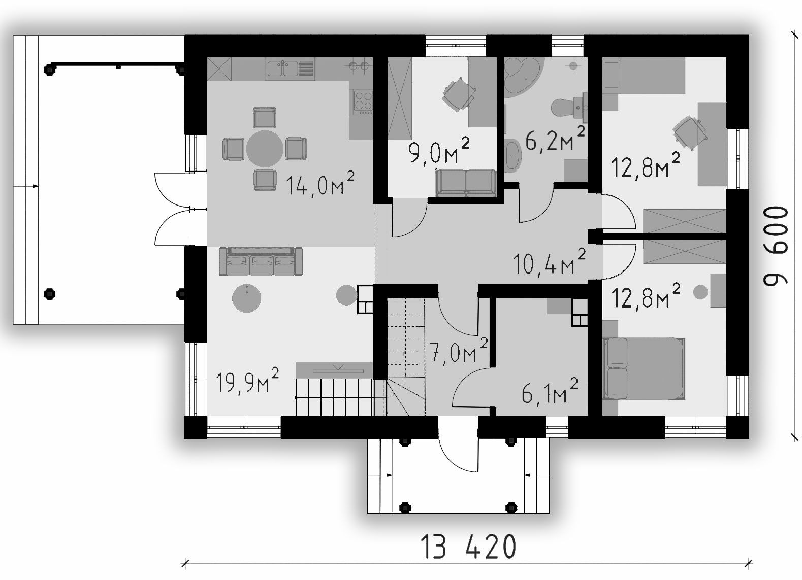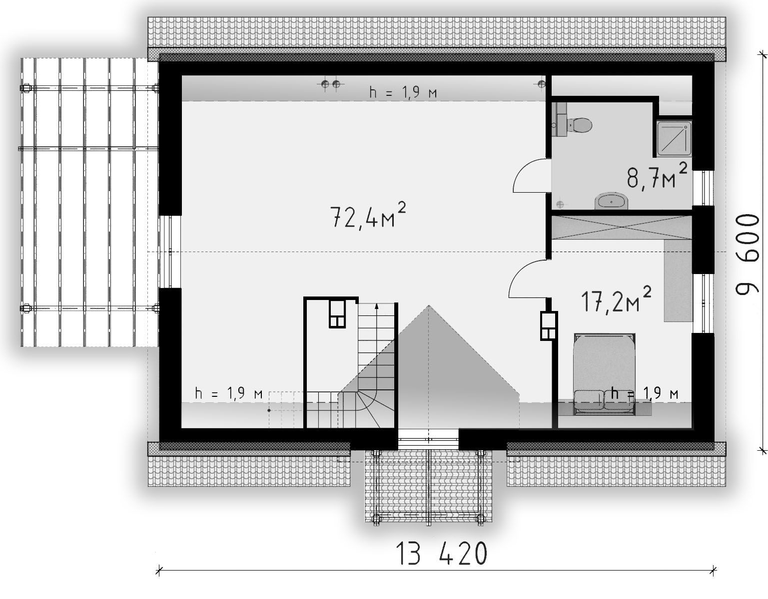 Мансардный дом с 4-мя спальнями и свободной планировкой мансарды.