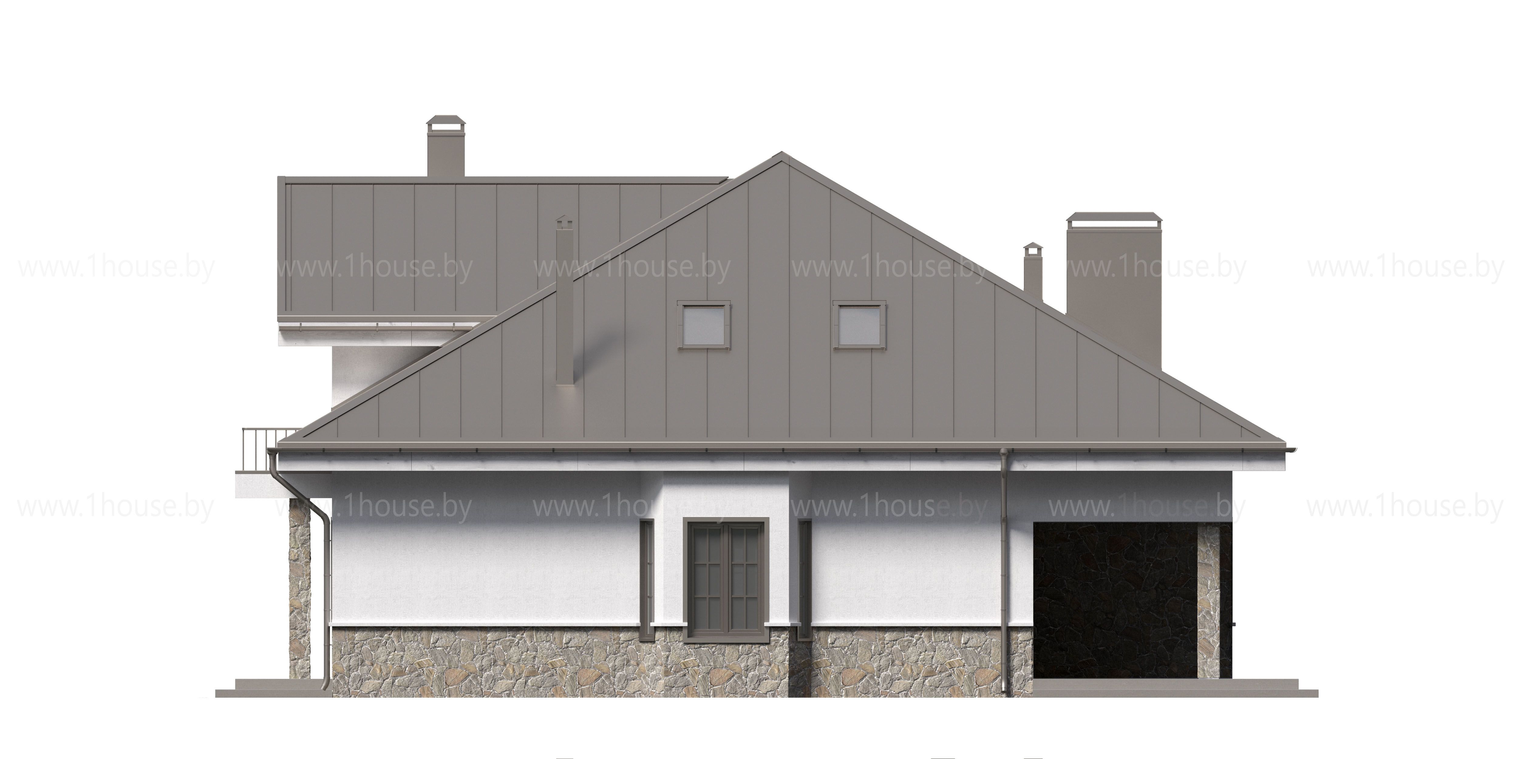 Высота до чистового потолка в наших проектах равна 2,8 метра на 1-ом этаже и 2,7 метра на 2-ом этаже. Если нужна высота потолка больше, то можно поднять крышу без ущерба архитектуре на 1 блок (200-250мм).
