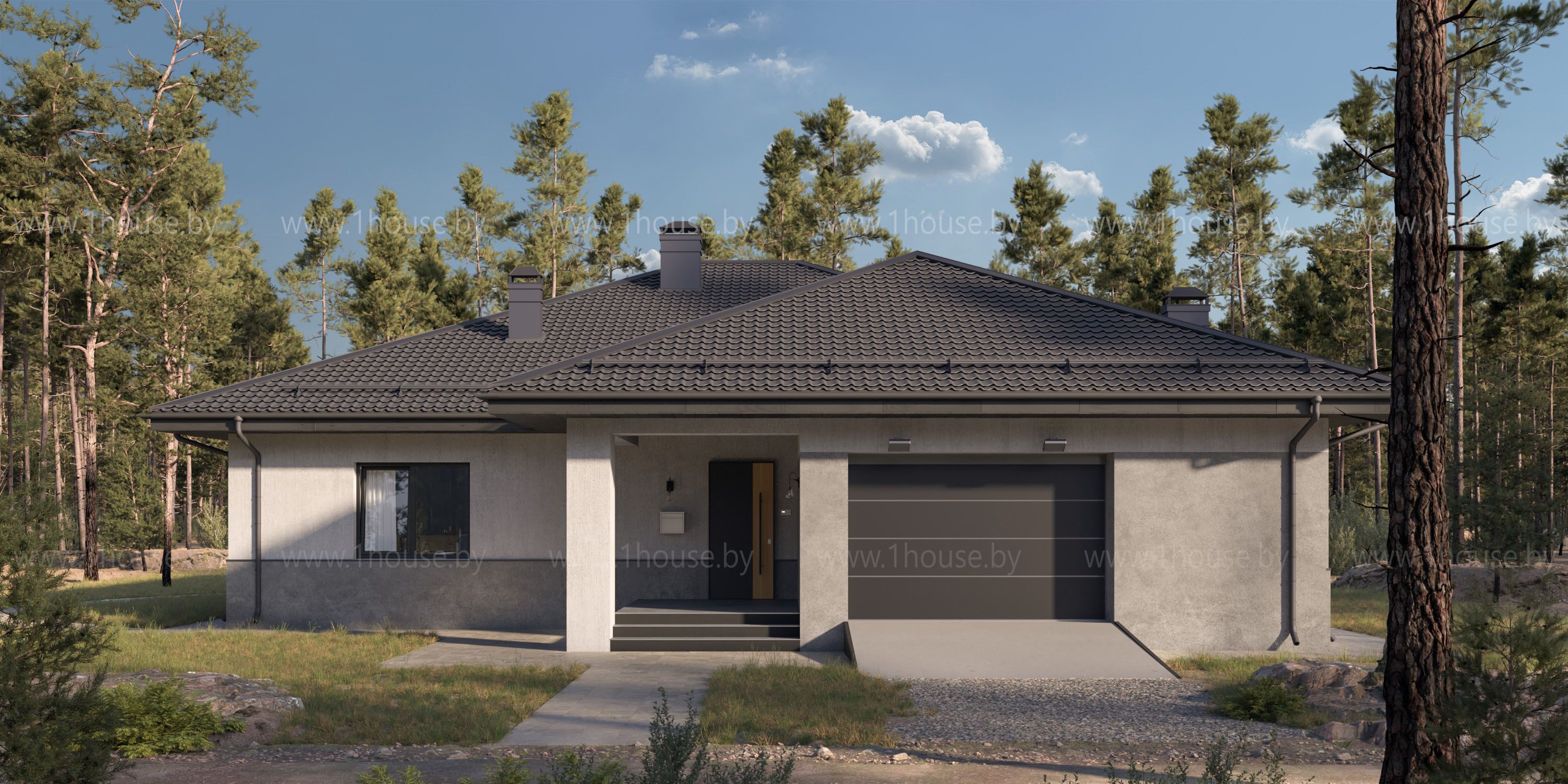 Одноэтажный дом с гаражом и 3мя спальнями.
