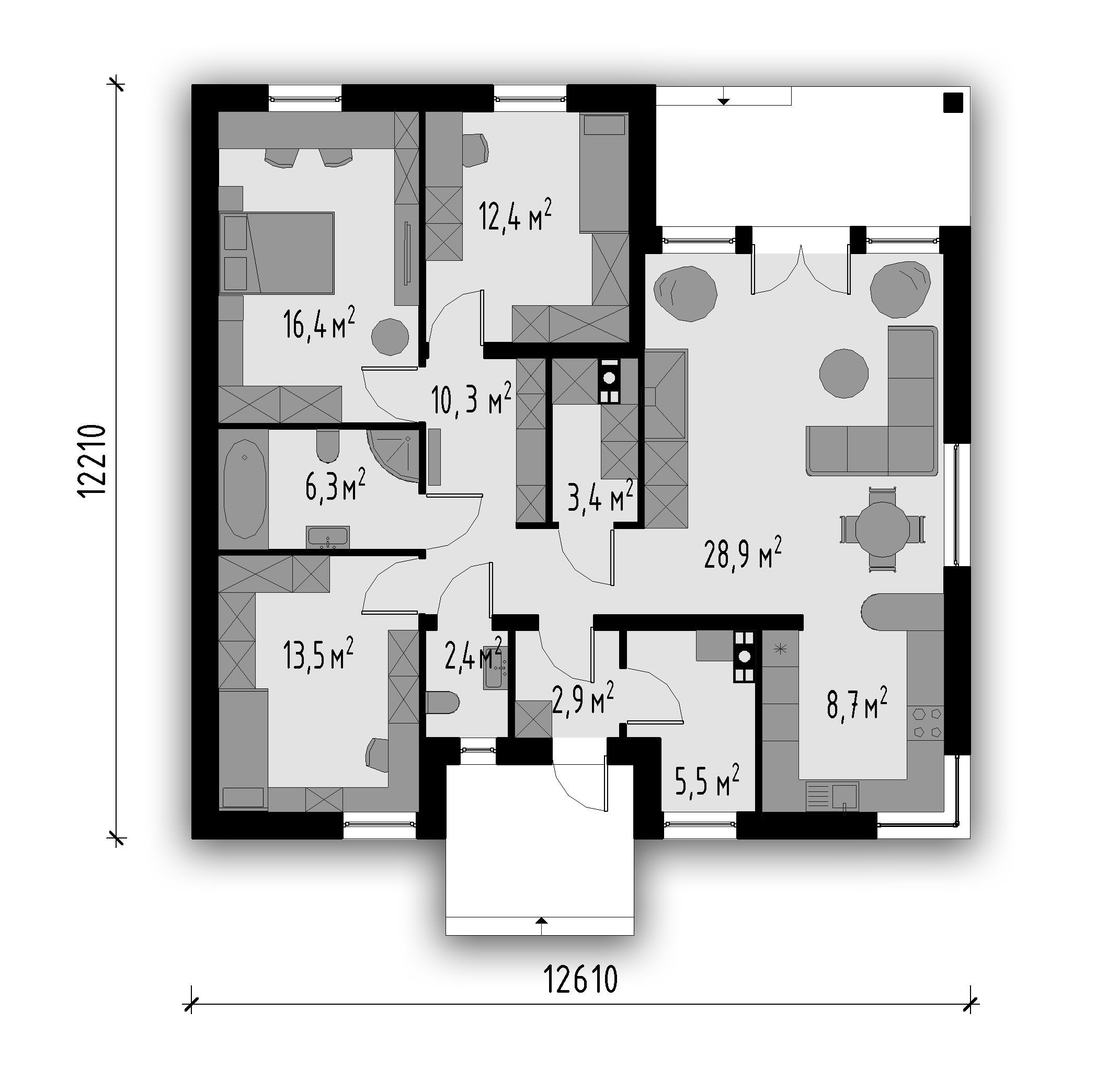 Площадь теплого контура - площадь всех помещений внутри дома, без учёта площадей крылец, террас, навесов, балконов.