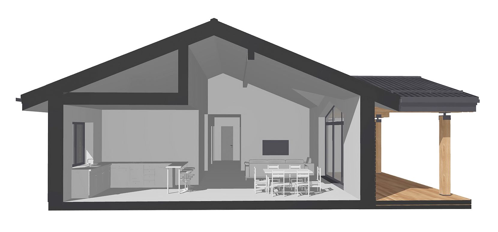 Изменения и доработки проекта, которые не затрагивают объём дома и несущие стены, возможны в рамках типового проекта, если изменений много и они затрагивают множественные изменения объёма дома и несущих конструкций, то лучше сразу разрабатывать индивидуальный проект на основе типового. Примеры несущественных изменений проекта: перенос или изменений перегородок, окон, дверей, высоты потолка, изменение назначения помещений, изменение размеров пола террасы. Существенные изменения типового проекта: перемещение несущих стен и колонн, пропорциональное увеличение площади дома, изменение этажности дома.
