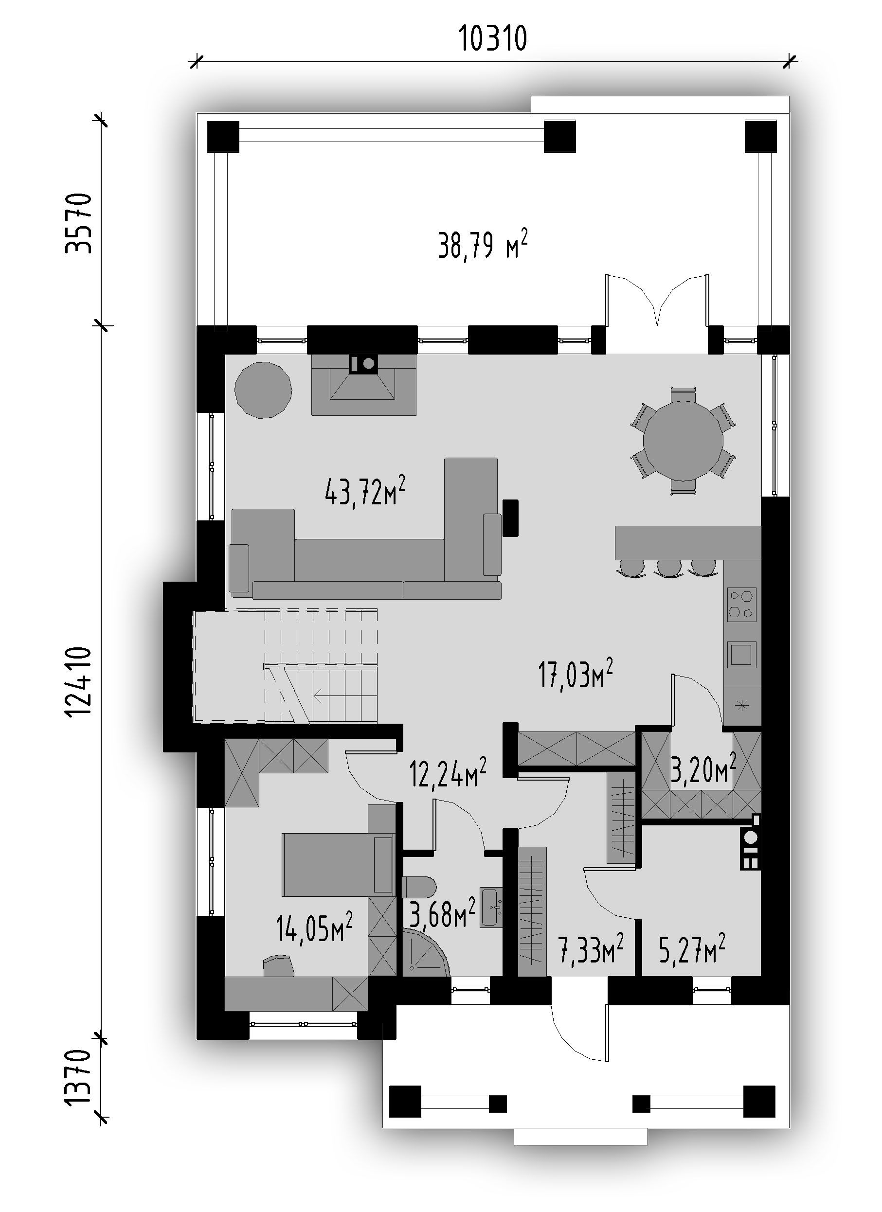 Наши проекты разработаны под стеновые блоки из газобетона, керамзитобетона или керамического блока, поскольку они являются взаимозаменяемыми. Состав наружной стены представляет собой пирог из блока 375мм и утеплителя 50мм/100мм, внутренние несущие стены — это блок 250мм, перегородки — блок 100мм. Вместо блоков 375мм/250мм/100мм, можно использовать блоки 300/400мм, 300мм, 120/150мм соответственно.