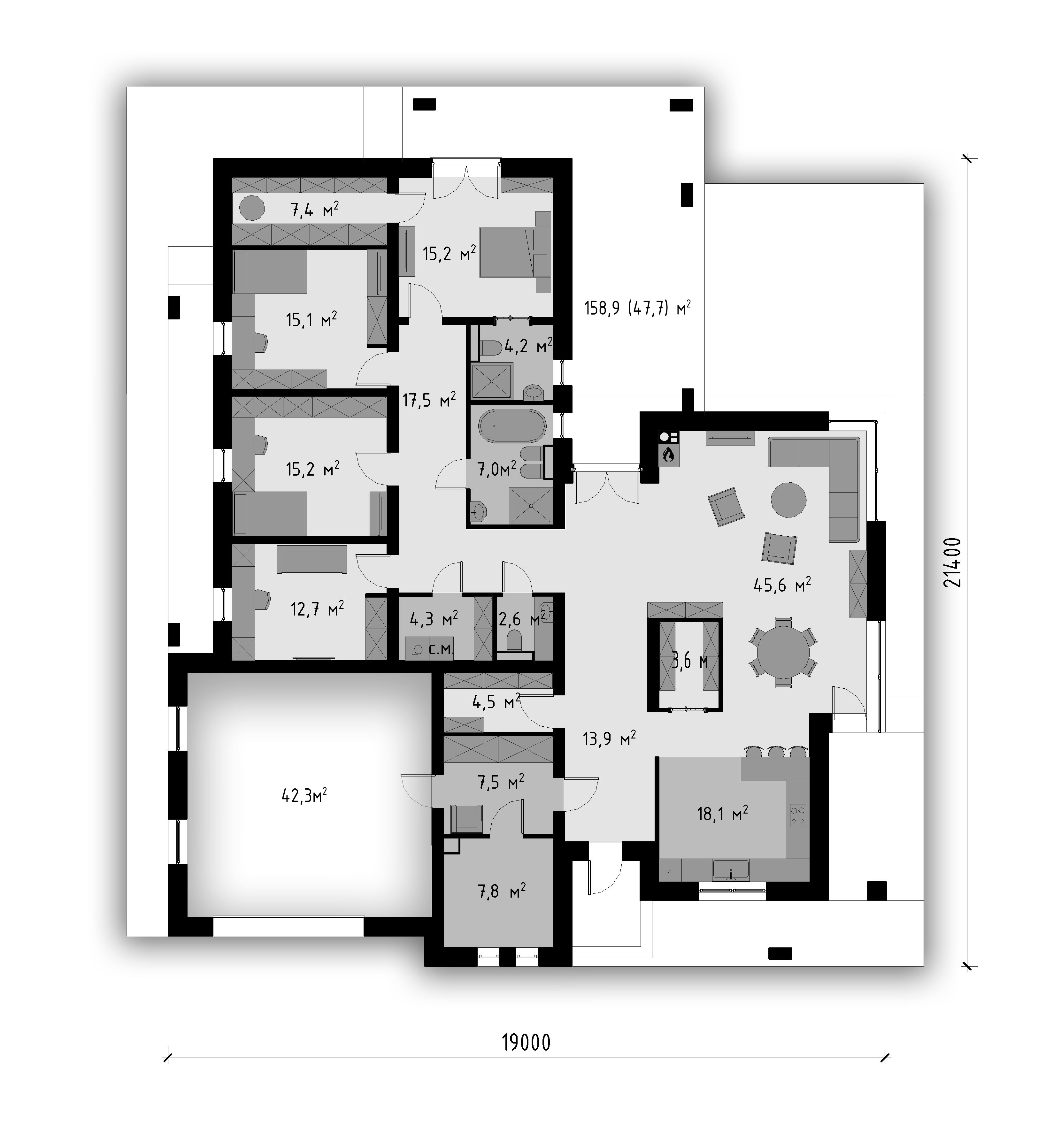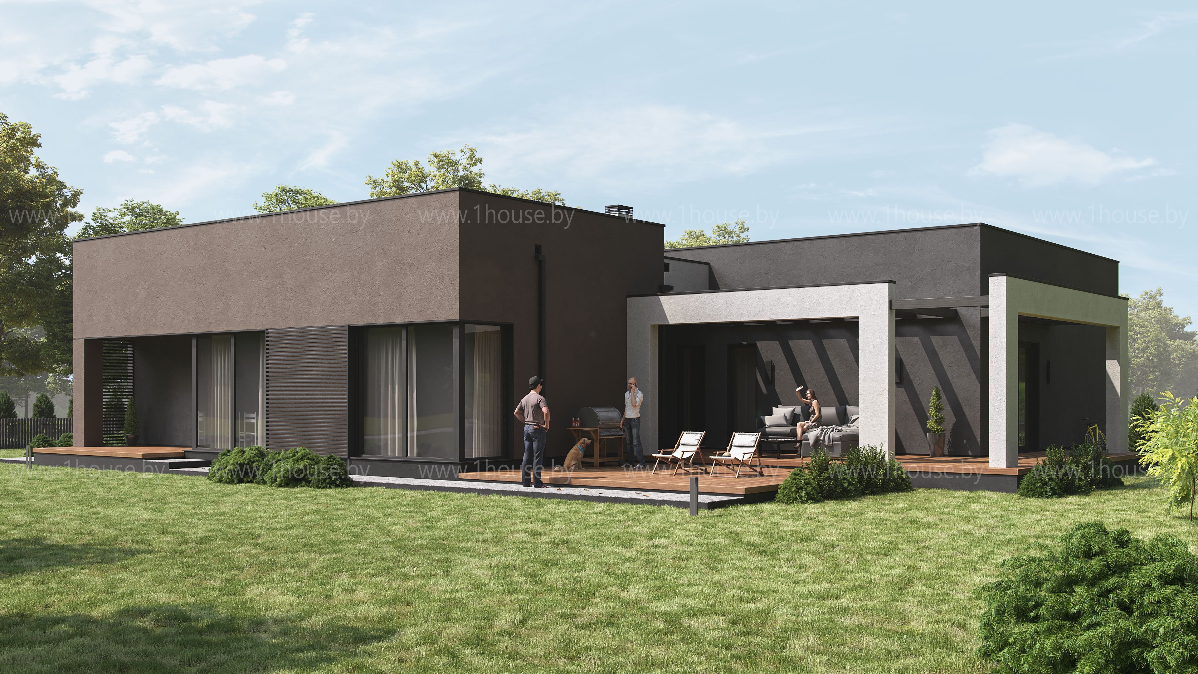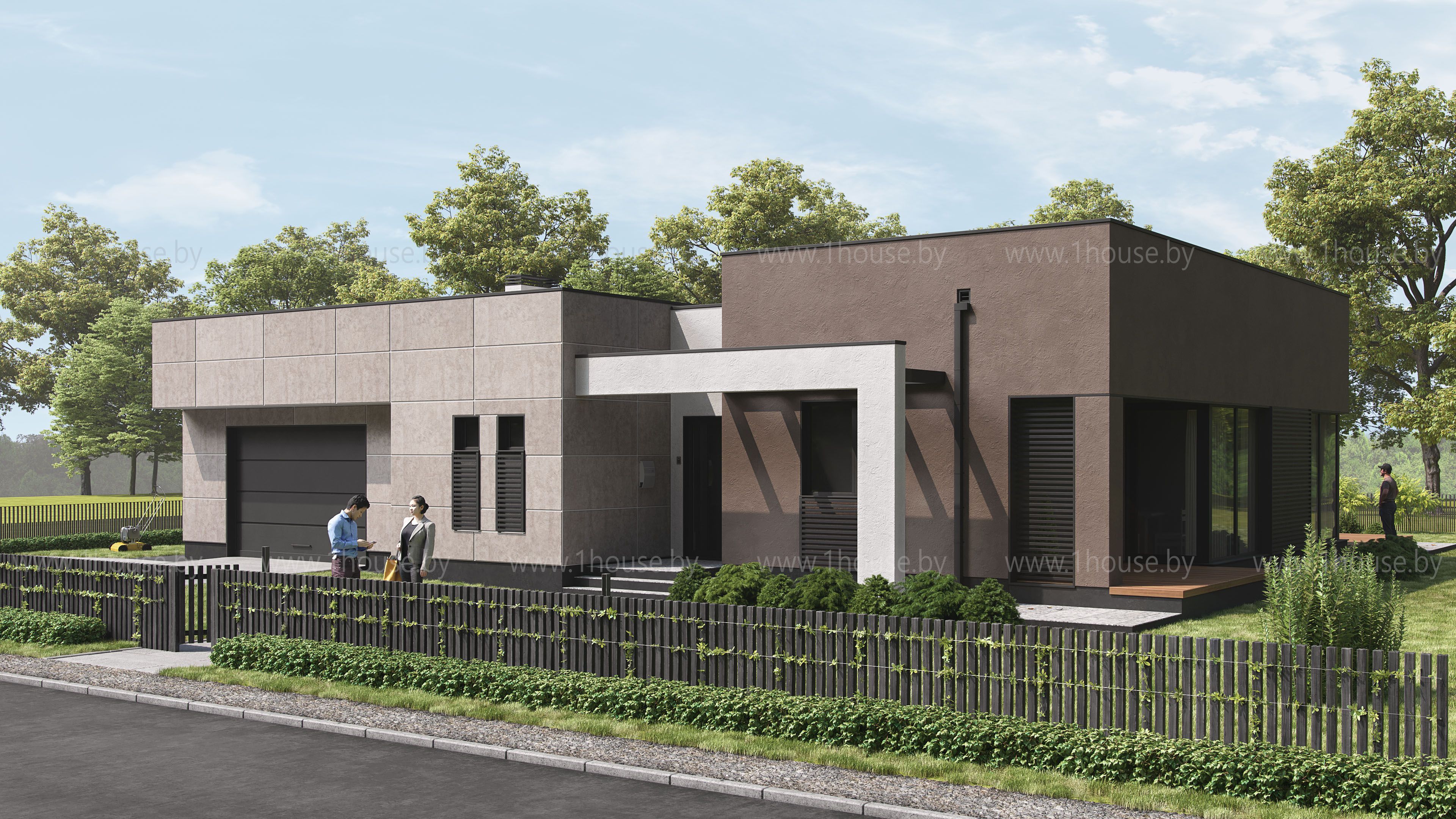 Современный одноэтажный дом с 4мя спальнями и гаражом.