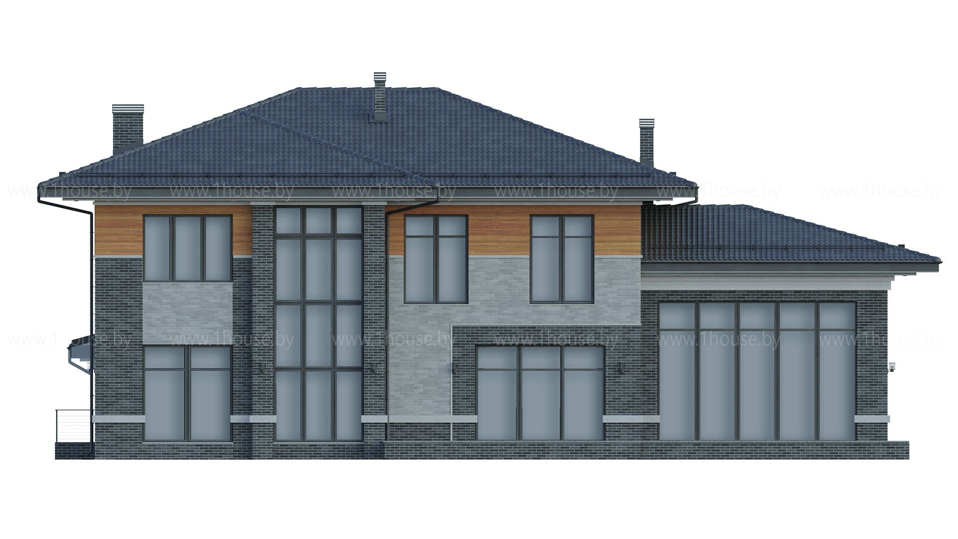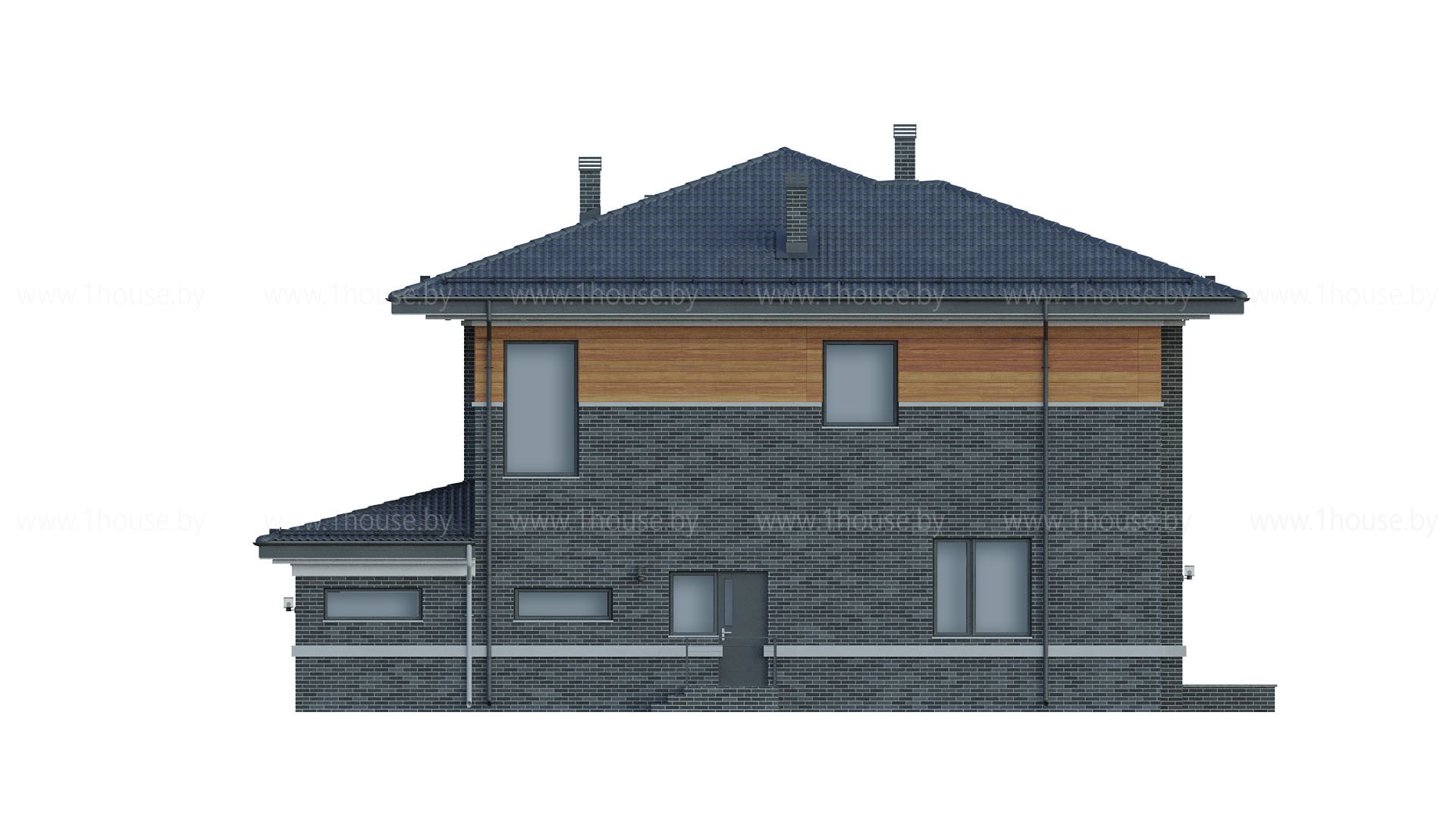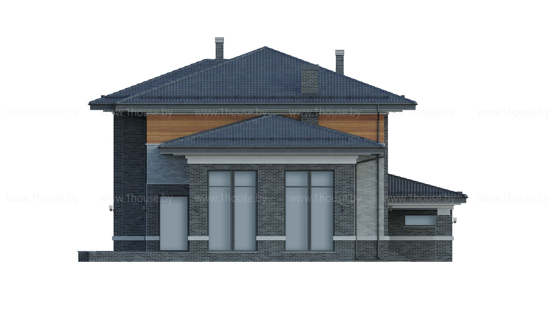 Высота до чистового потолка в наших проектах равна 2,8 метра на 1-ом этаже и 2,7 метра на 2-ом этаже. Если нужна высота потолка больше, то можно поднять крышу без ущерба архитектуре на 1 блок (200-250мм).
