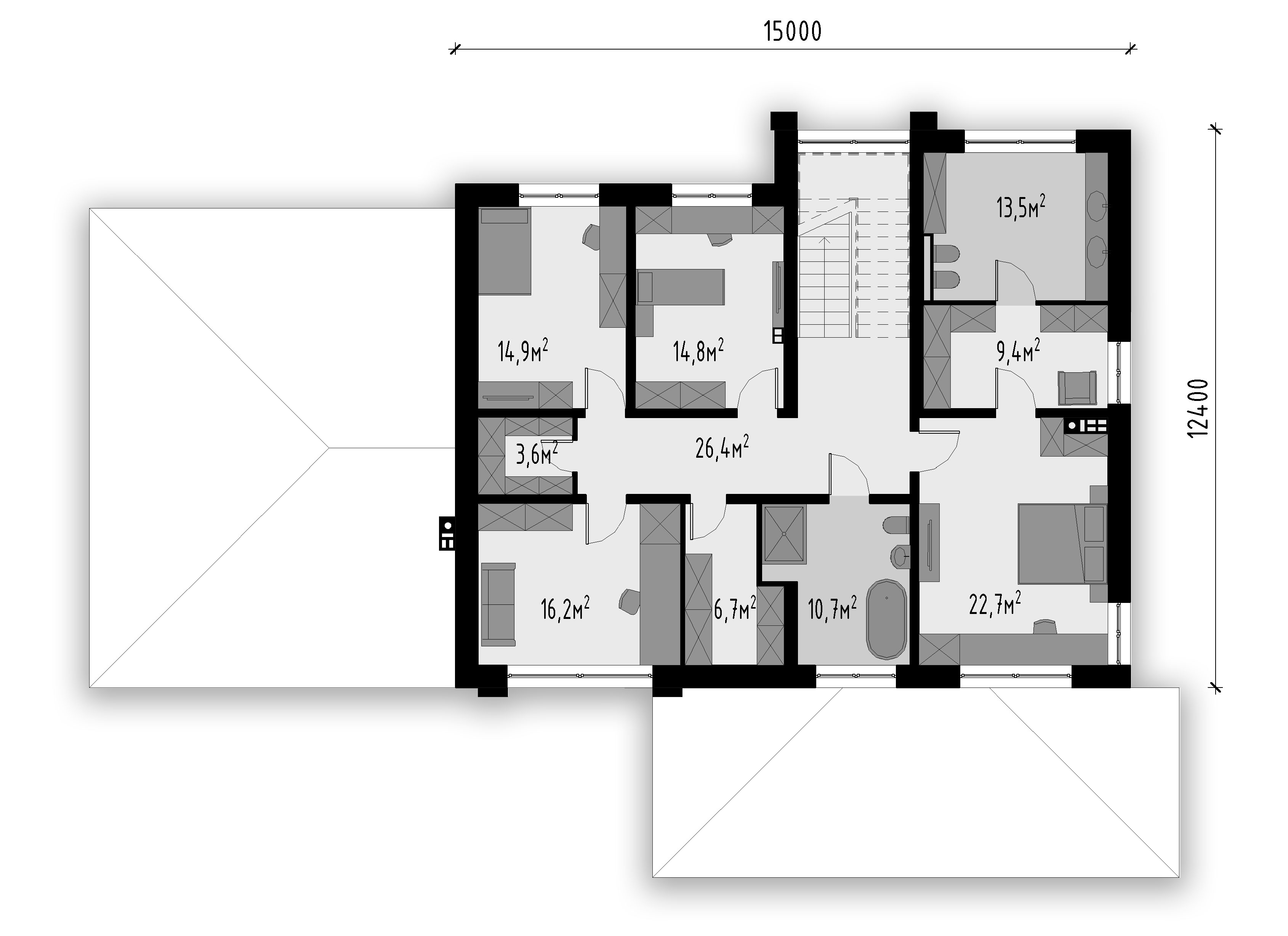На сайте представлены эскизы, а не сами проекты. Вы можете сделать запрос, нажав на кнопку рядом с планировкой проекта дома "Запросить линейные размеры".