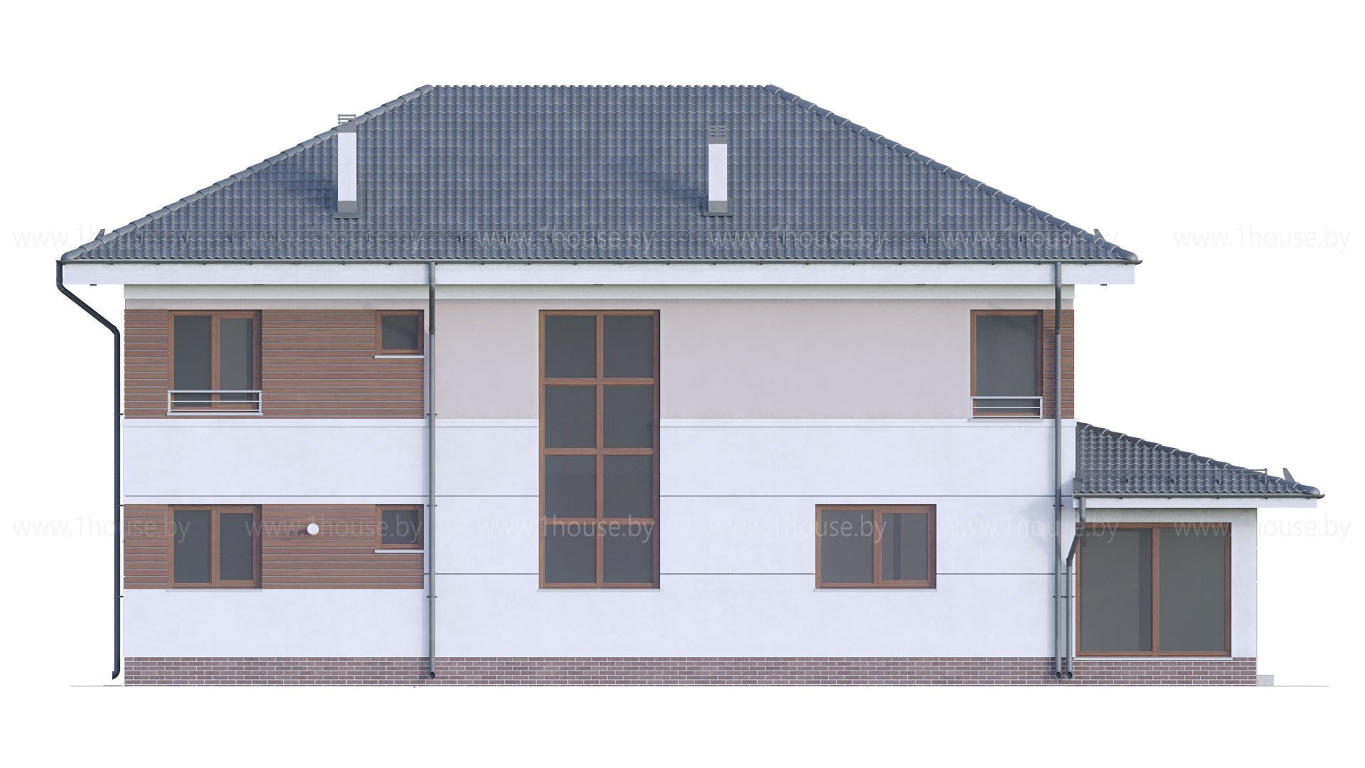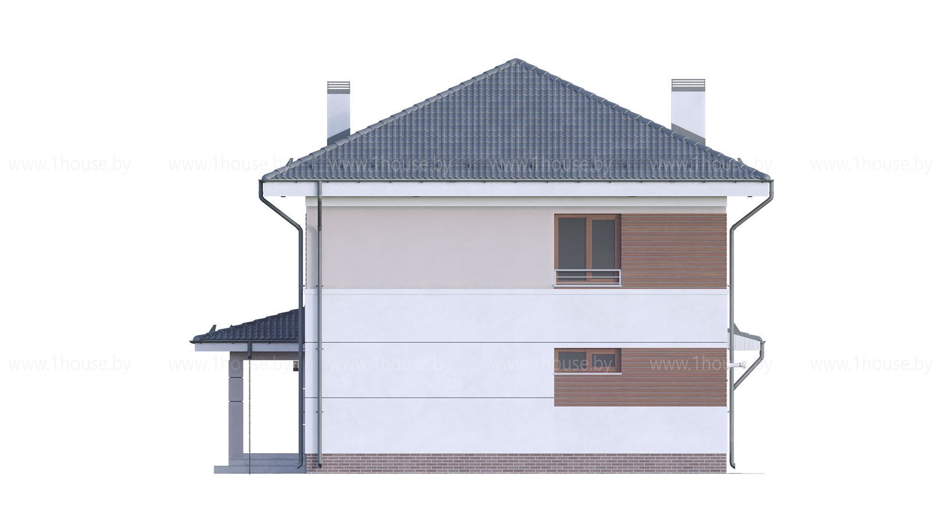Высота до чистового потолка в наших проектах равна 2,8 метра на 1-ом этаже и 2,7 метра на 2-ом этаже. Если нужна высота потолка больше, то можно поднять крышу без ущерба архитектуре на 1 блок (200-250мм).