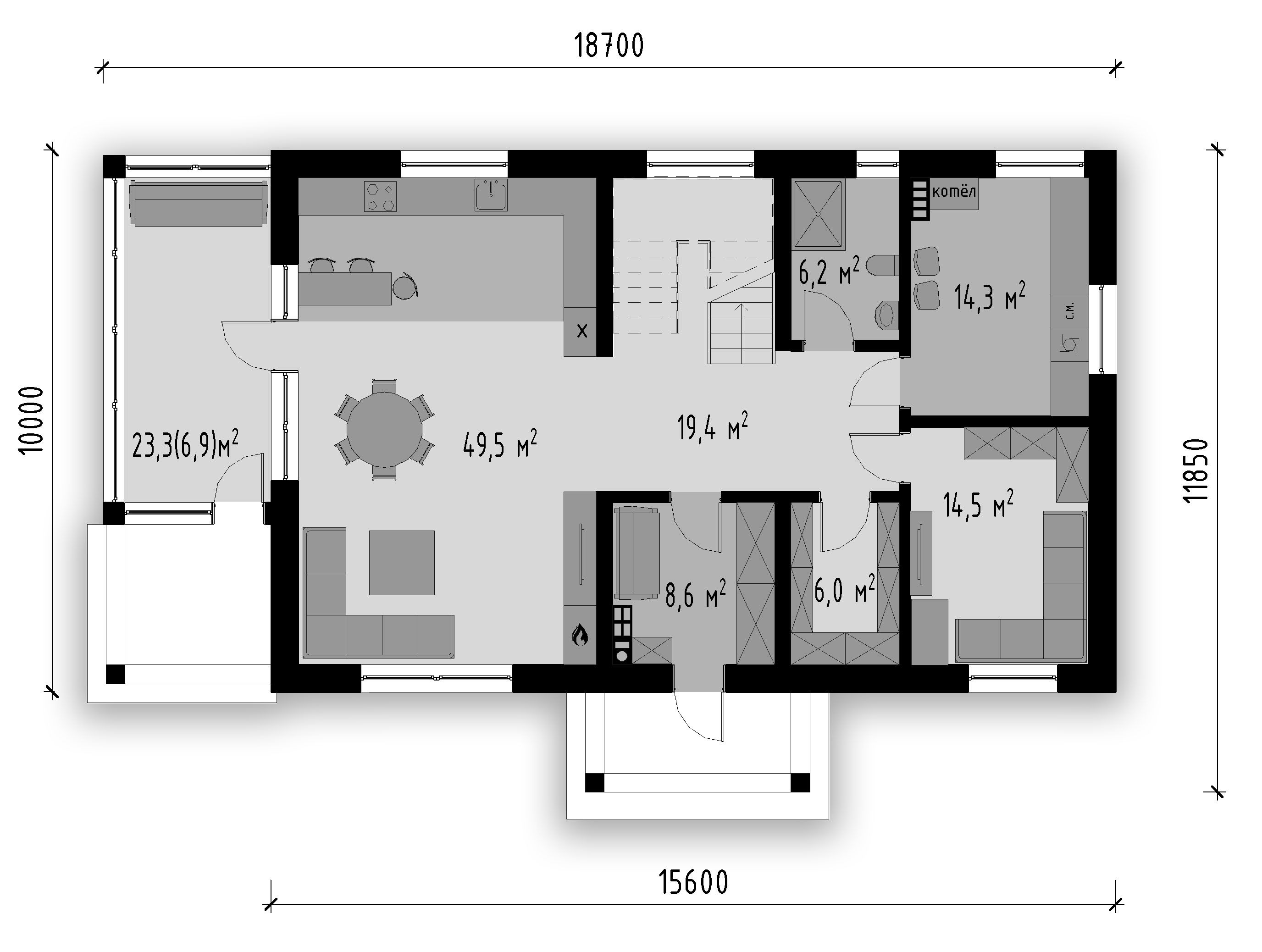 На сайте представлены эскизы, а не сами проекты. Вы можете сделать запрос, нажав на кнопку рядом с планировкой проекта дома "Запросить линейные размеры".