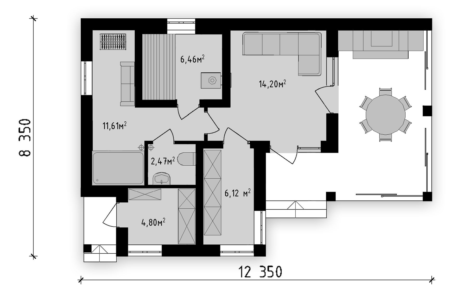Проект бани с остеклённой террасой.